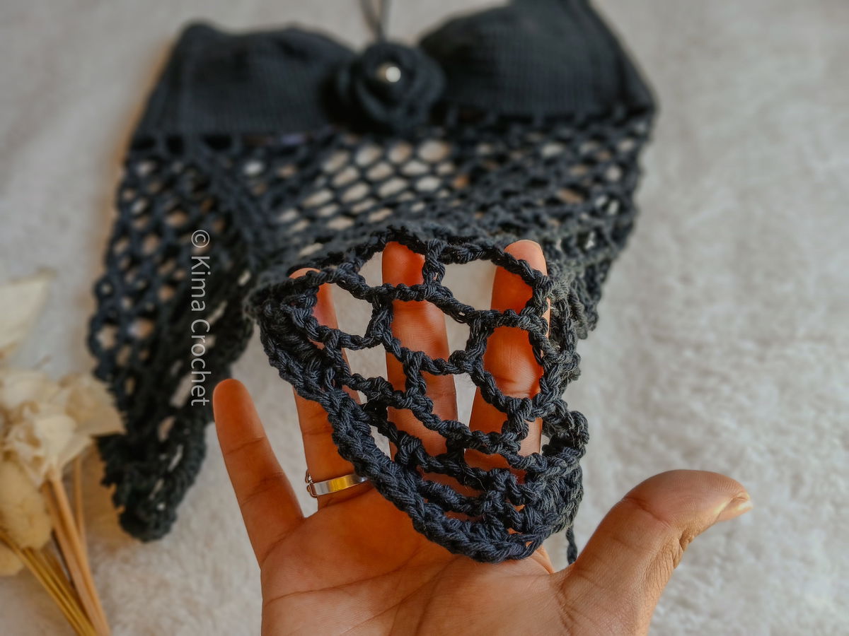 Tejido a mano en hilo de algodón 8/6. Se regula con lazo en el cuello y en la espalda haciéndolo totalmente adaptable.